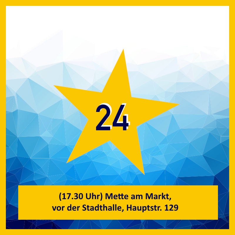 Den Abschluss bildet immer die "Mette am Markt" am 24.12. um 17:30 Uhr vor der Stadthalle.